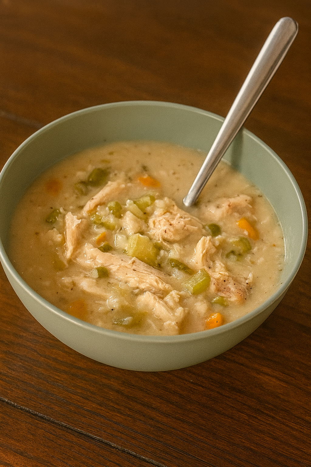 Creamy Greek Lemon Chicken Soup — cozy, bright, and perfect with a couple slices of homemade bread.